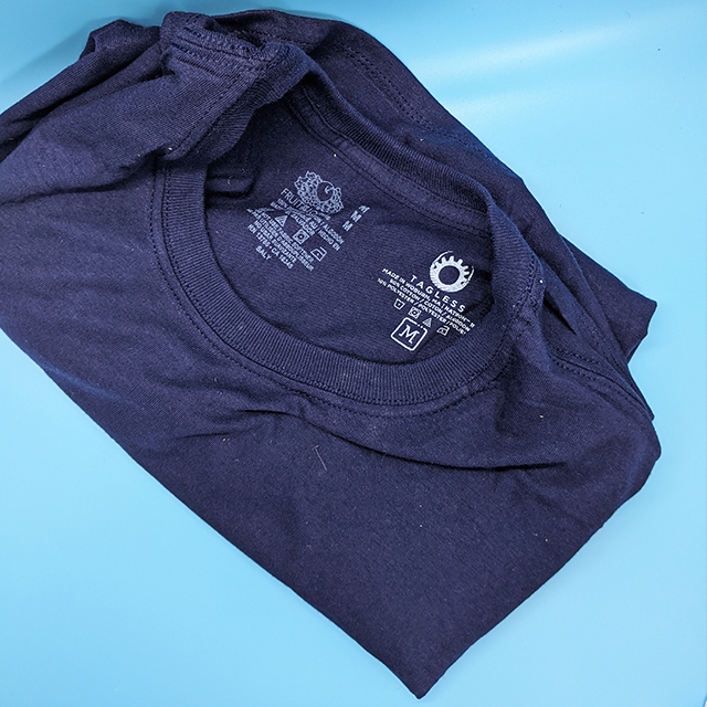 Initially, Tagless label printing was done using heat to apply to apparel. The design or logo is printed onto a heat transfer paper. Then, additional additives such as powder are added. Once the label is ready, the label is placed on the garment, and then using heat the design is transferred onto the textile. Once it cools off, the paper is peeled off, leaving the image on the textile.  For T-shirt printing, the initial quality of the print is unmatched buy both screen printing or pad printed label. However, this quality deteriorates very fast. As a result, heat transfer labels are not ideal for tagless printing. Additionally, several steps are required to make this process successful. These steps are costly and are not efficient in high volume production set up.